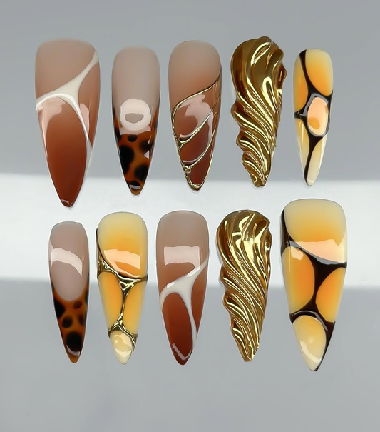 This captivating short press-on set features a rich palette of molten amber, sunset orange, and...